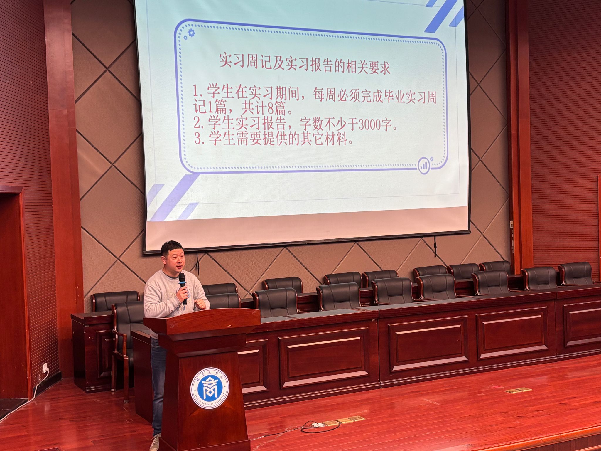 日语系郭桓老师就毕业实习工作展开专项指导。他强调毕业实习在人才培养中的核心地位,对深化专业认识、锤炼实践能力、衔接校园与职场具有不可替代的重要作用。他从实习目的与意义、实习安排、实习内容及实习要求四个维度,系统性地讲解实习周记、报告的撰写规范以及核心要点,为毕业生高质量完成实习任务提供了清晰指引。