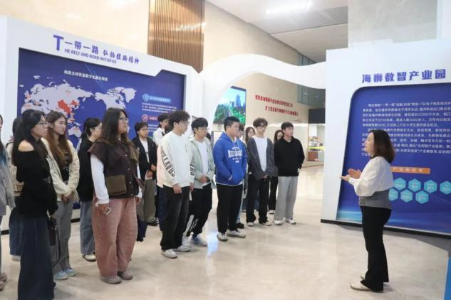 在集团市场部经理黄超的带领下,师生们重点参观了海狮集团跨境电商展厅。黄超经理向师生们详细介绍了集团转型为跨境电商生态链运营商的成功经验以及集团在跨境电商领域取得的显著成就黄经理还与师生们深入探讨了跨境电商园区与高校合作的新模式以及集团内部的人才培养机制。
